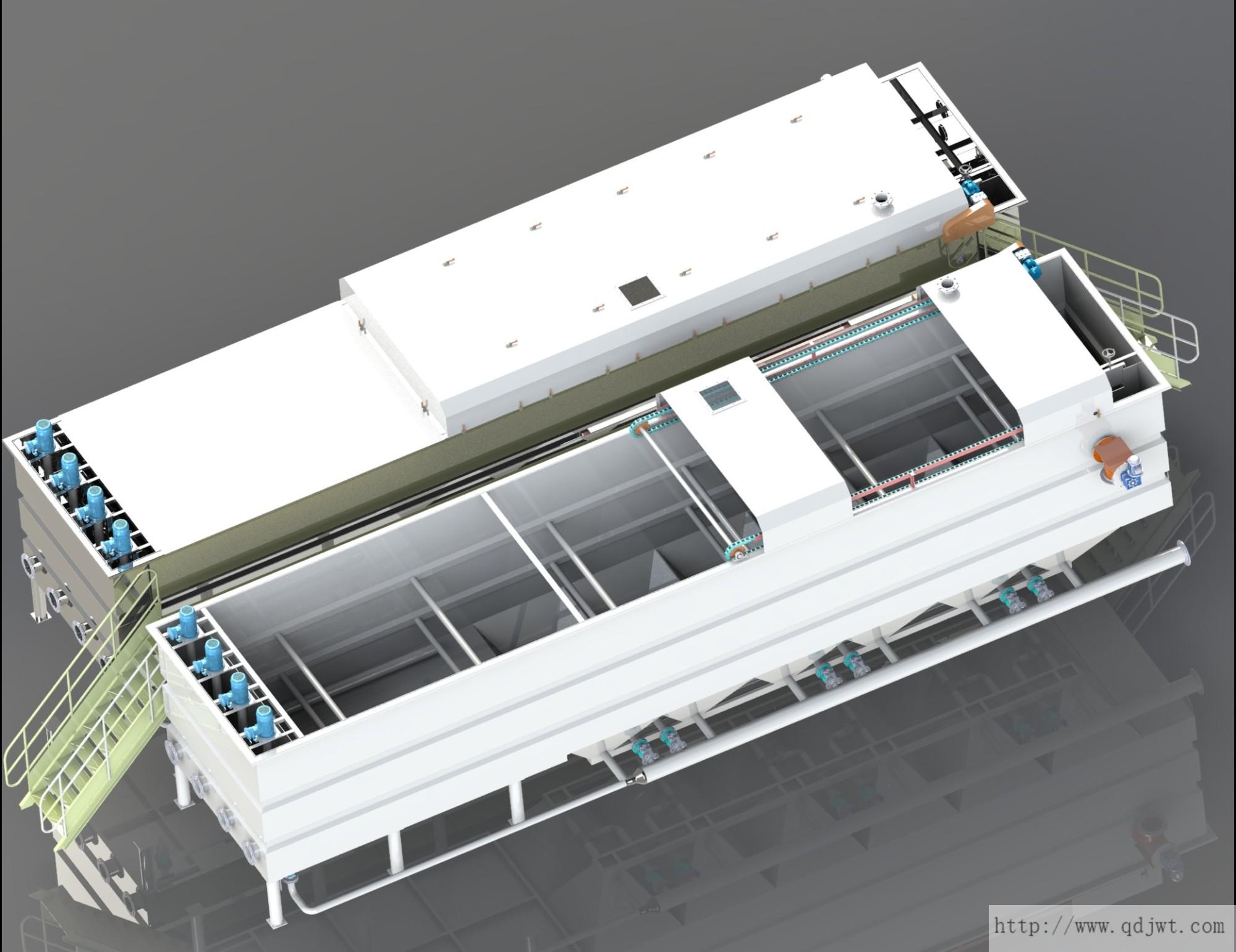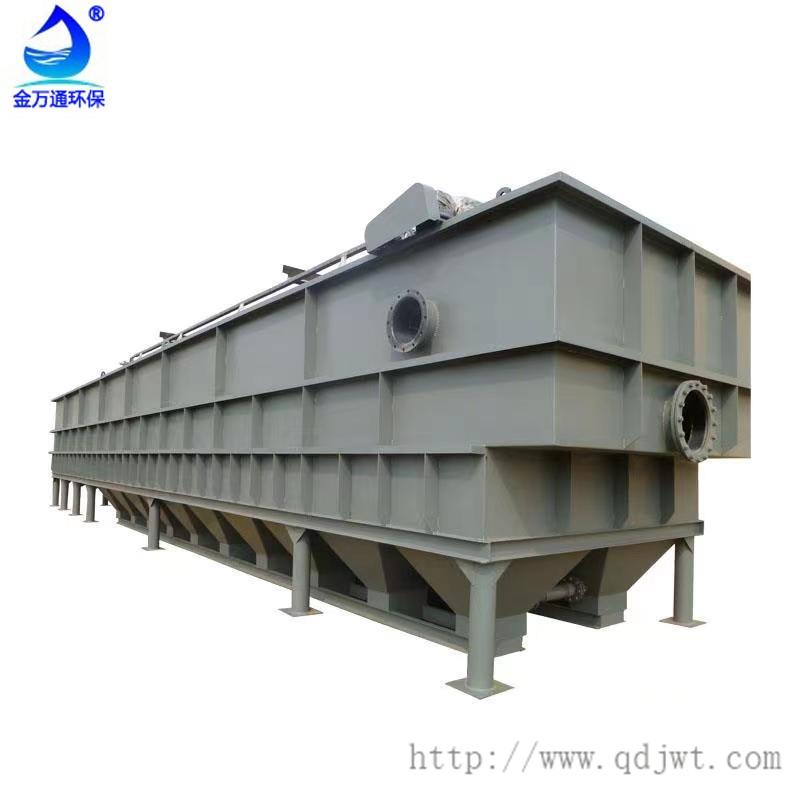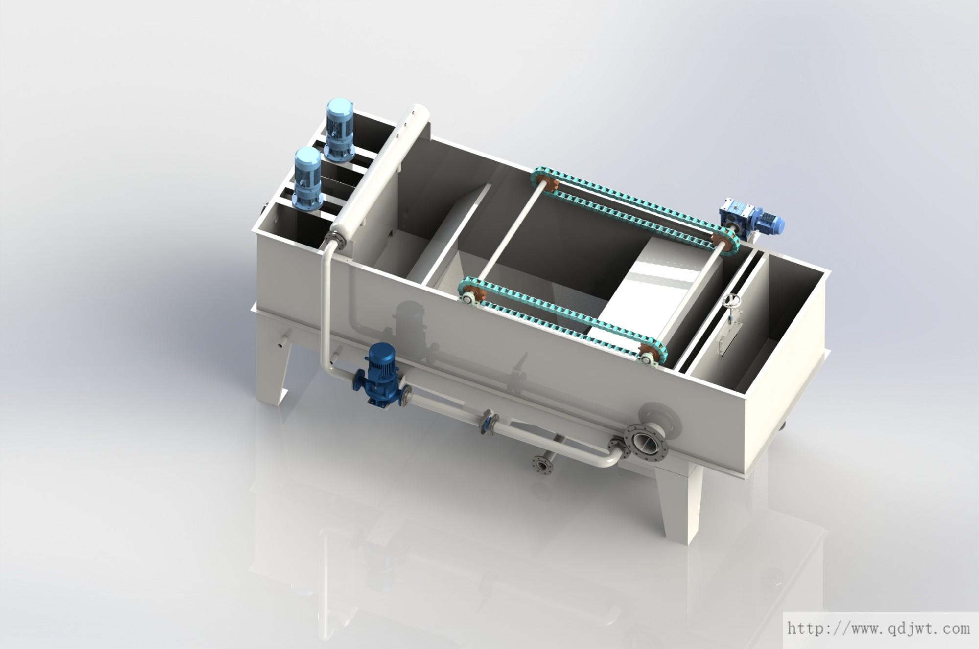 氣浮裝置是在一定條件下將大量空氣溶于水中,形成溶氣水,作為工作介質(zhì),通過釋放器驟然減壓從而快速釋放,產(chǎn)生大量微細氣泡粘附于經(jīng)過混凝反應(yīng)后廢水中的“礬花”上,使絮凝體快速上浮,從而迅速地除去水中的污染物質(zhì),達到凈水的目的。